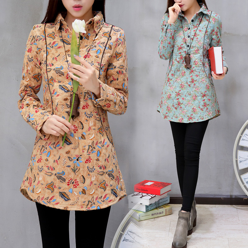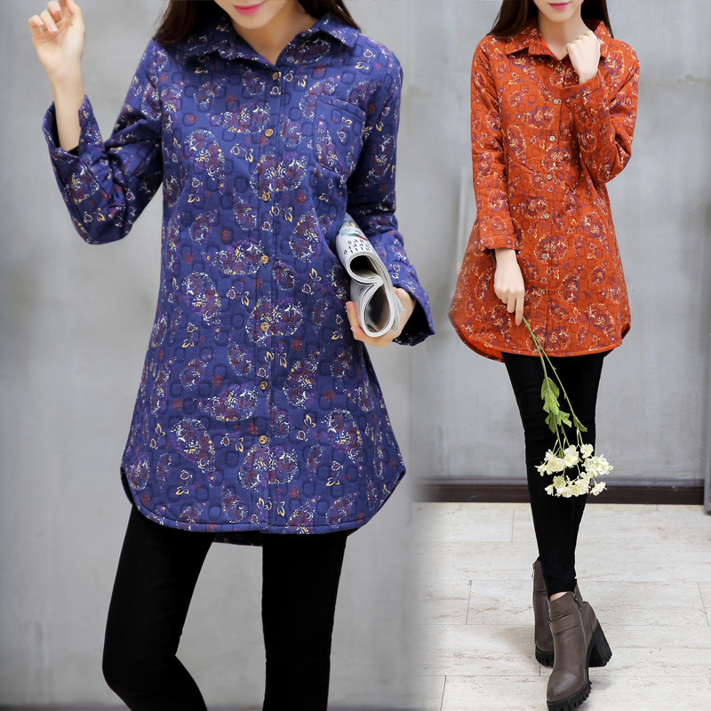 廠家直銷新款加棉加厚襯衫女長(zhǎng)袖中長(zhǎng)款民族風(fēng)夾棉女式襯衣 /