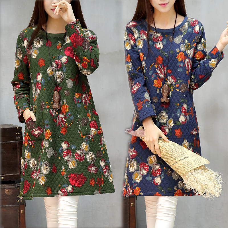 廠家直銷秋冬新款韓版夾棉加厚寬松顯瘦大碼女裝連衣裙 /