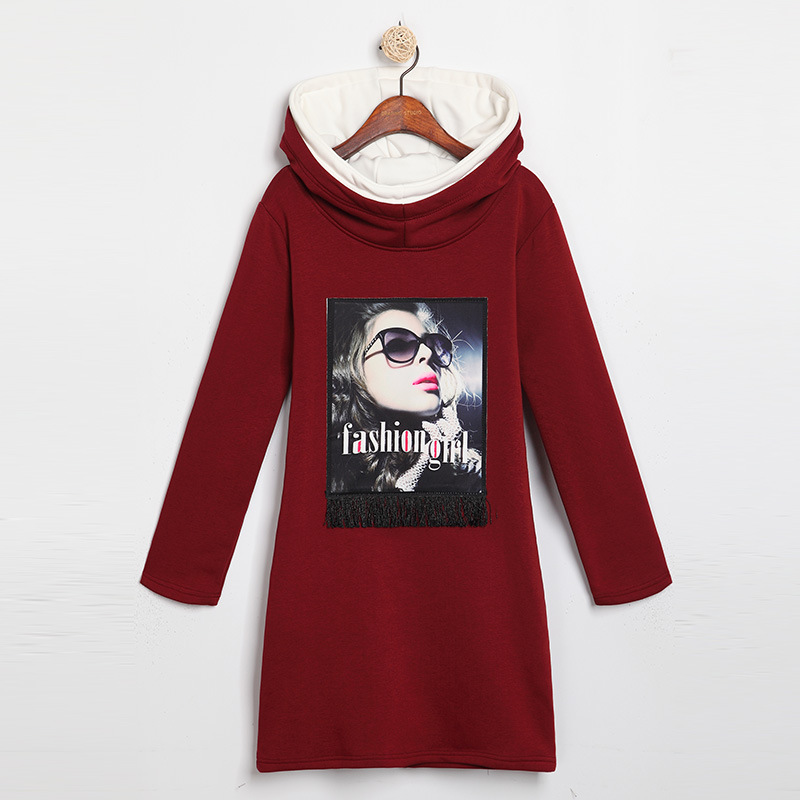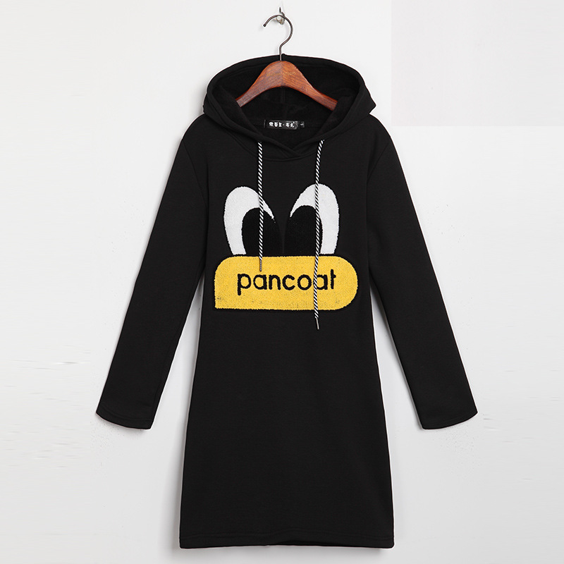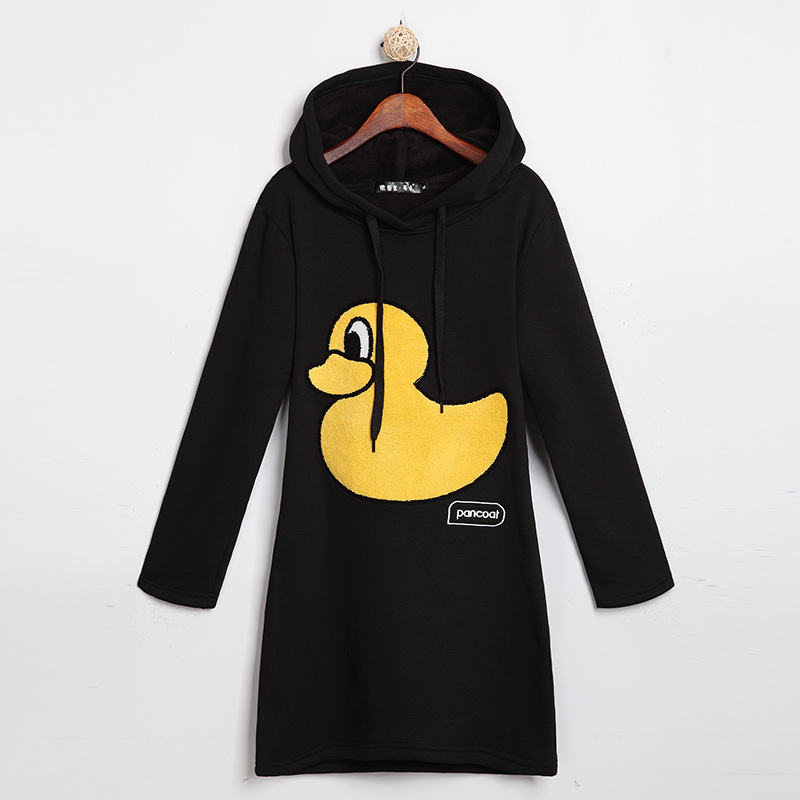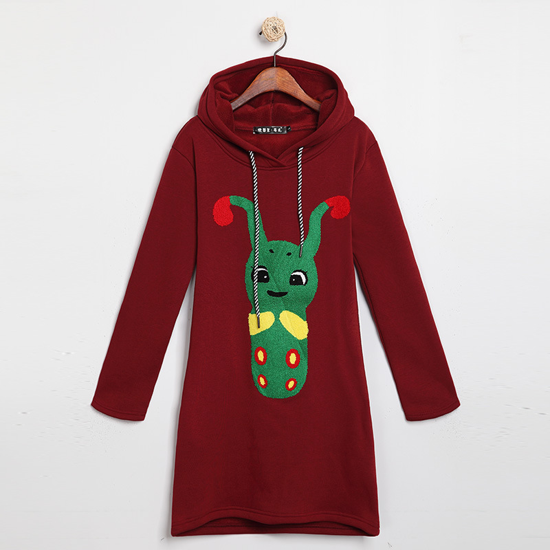 2015冬裝新款女裝韓版加絨時(shí)尚休閑女衛(wèi)衣中長款連帽繡花卡通圖案 /