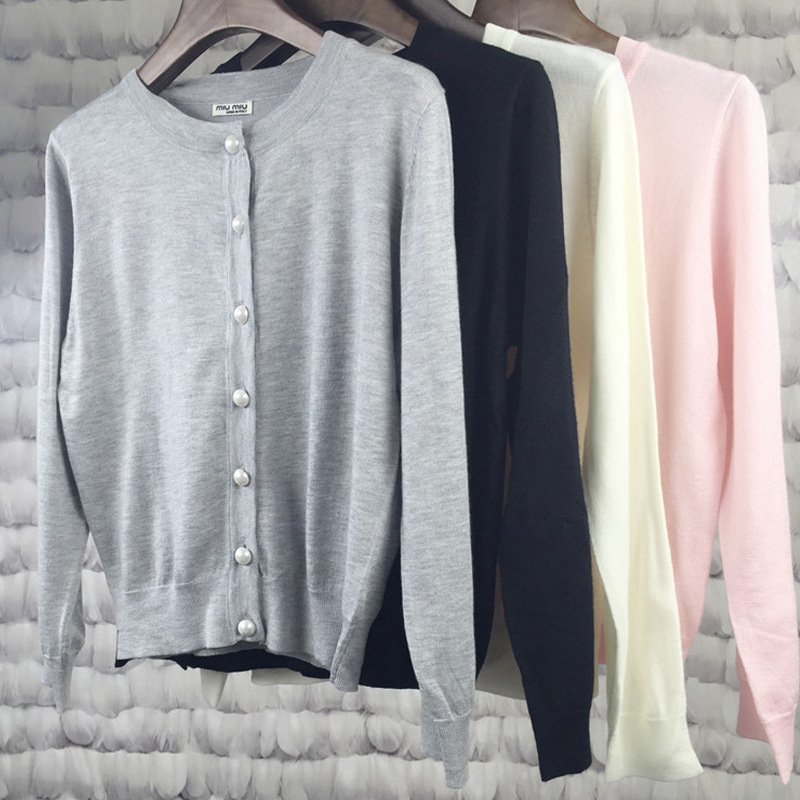 2015早秋時(shí)尚女裝新款修身精品新款珍珠扣毛衣短針織長(zhǎng)袖開(kāi)衫外套 /