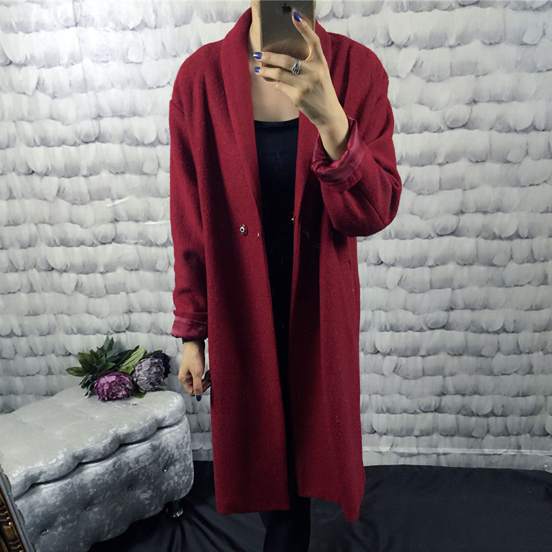 2015秋季潮牌貨小怪獸字母翻領(lǐng)暗扣毛呢休閑中長(zhǎng)款大衣外套 /