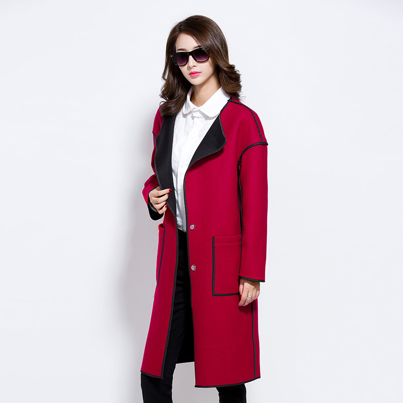 歐洲站女裝2015秋冬新款高端歐美大牌中長款長袖羊毛外套毛呢大衣 /