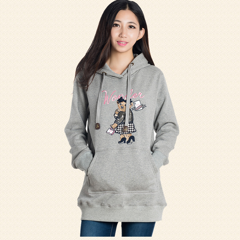 2015秋冬新款泰迪熊中長款運動休閑套頭衛(wèi)衣韓版純棉大碼衛(wèi)衣外套 /