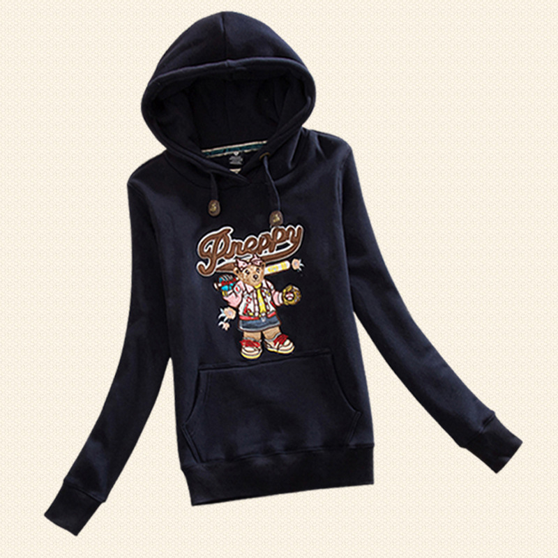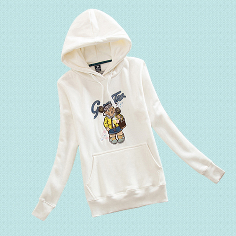 小熊維尼2015秋冬韓版連帽加絨衛(wèi)衣刺繡純棉套頭打底衫外套女長袖 /