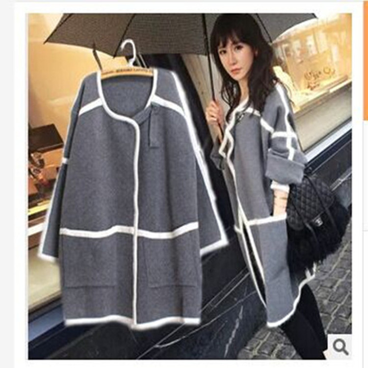 秋冬歐洲站新款嗆口小辣椒同款毛衣針織衫寬松開衫外套毛呢大衣女 /