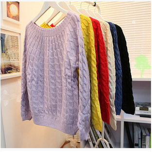 秋冬爆款時尚小麻花毛衣 圓領(lǐng)純色保暖復(fù)古女式針織衫特價批發(fā) /