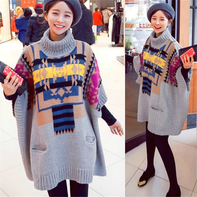 歐洲站2015秋冬新款歐美大碼女裝高領(lǐng)寬松蝙蝠袖氣質(zhì)修身套頭毛衣 /