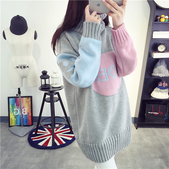 中長款卡通毛衣女套頭高領(lǐng)冬季新款韓版學(xué)生寬松外套潮批發(fā) /