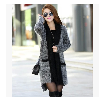 爆版2015 新款氣質(zhì)女裝歐美風(fēng)中長款寬松針織馬海毛開衫廠家直銷 /