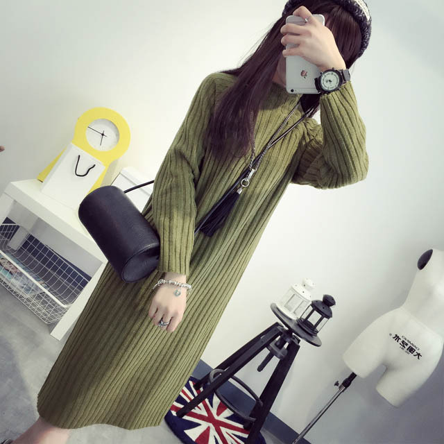 潮秋冬新品長款毛衣裙冬季套頭女韓版打底寬松厚高領(lǐng)廠家直銷 /
