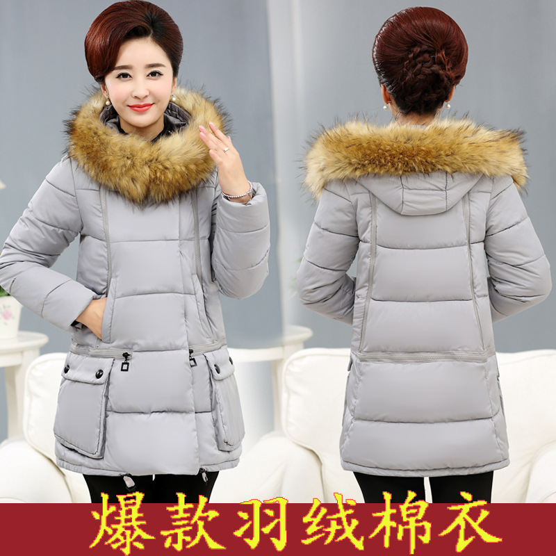 冬季新款中年女休閑連帽棉衣外套中老年女裝媽媽裝中長款羽絨棉服 /