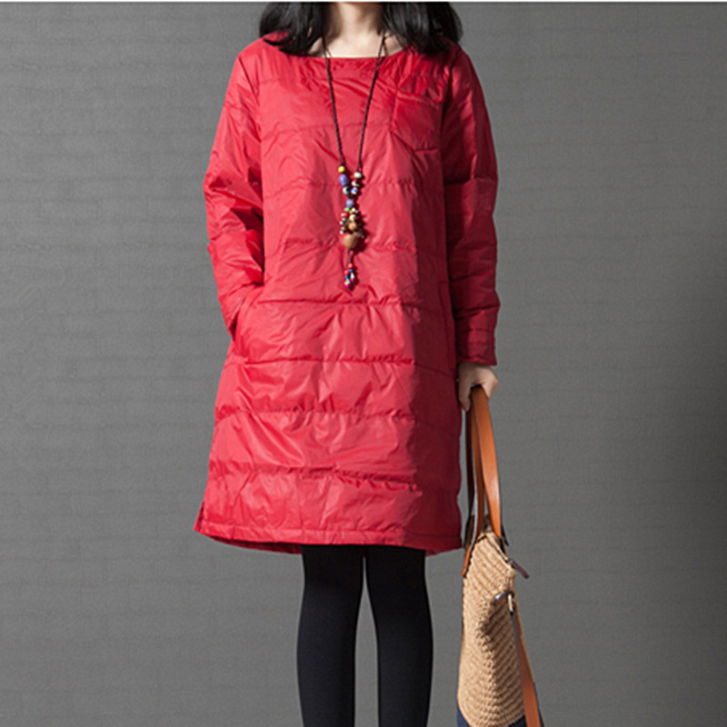 2015冬季新款韓版寬松大碼女裝純色壓棉圓領(lǐng)長袖連衣裙 /