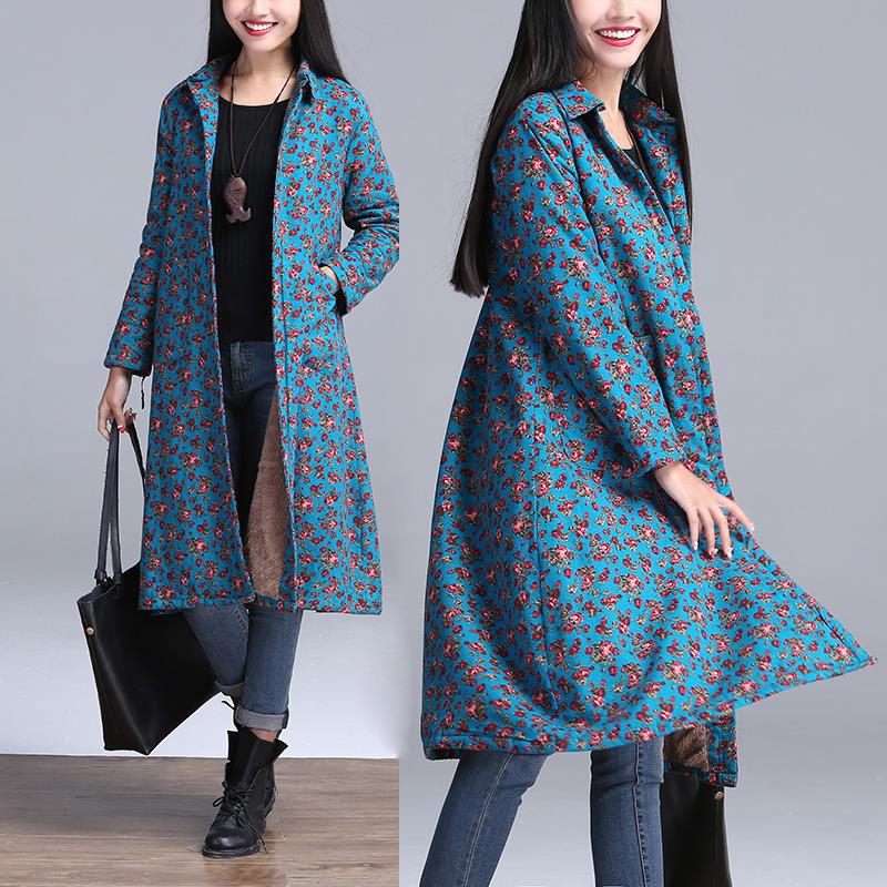 加特厚絨2015冬季新款民族風碎花長款外套修身保暖襯衫風衣大碼 /