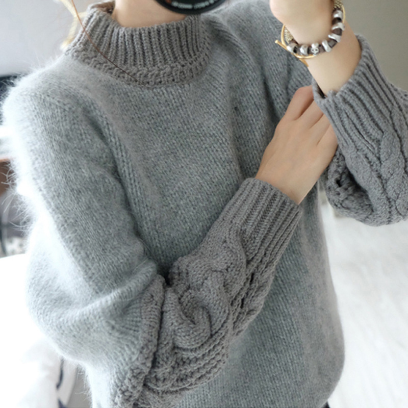 2015秋冬韓版麻花袖百搭打底針織衫半高領毛衣套頭女加厚上衣 /