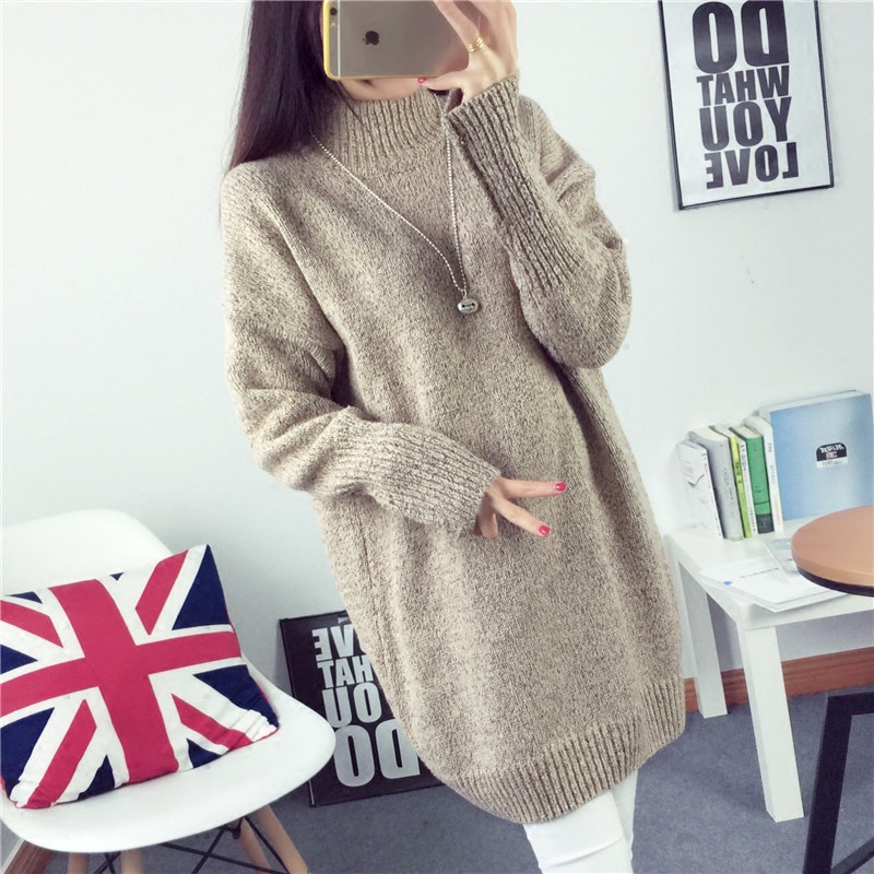 高領毛衣套頭中長款寬松加厚裙女士打底衫冬裝外套 /