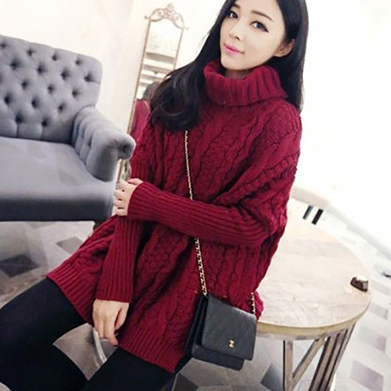 毛衣女2015冬季新款韓國冬裝毛衣加厚麻花高領套頭外套蝙蝠袖寬松 /