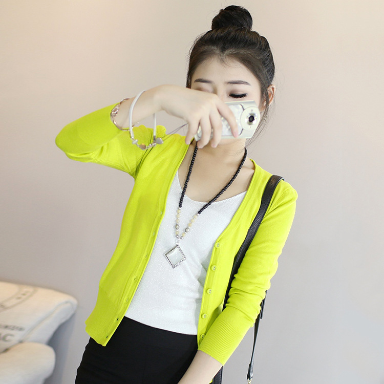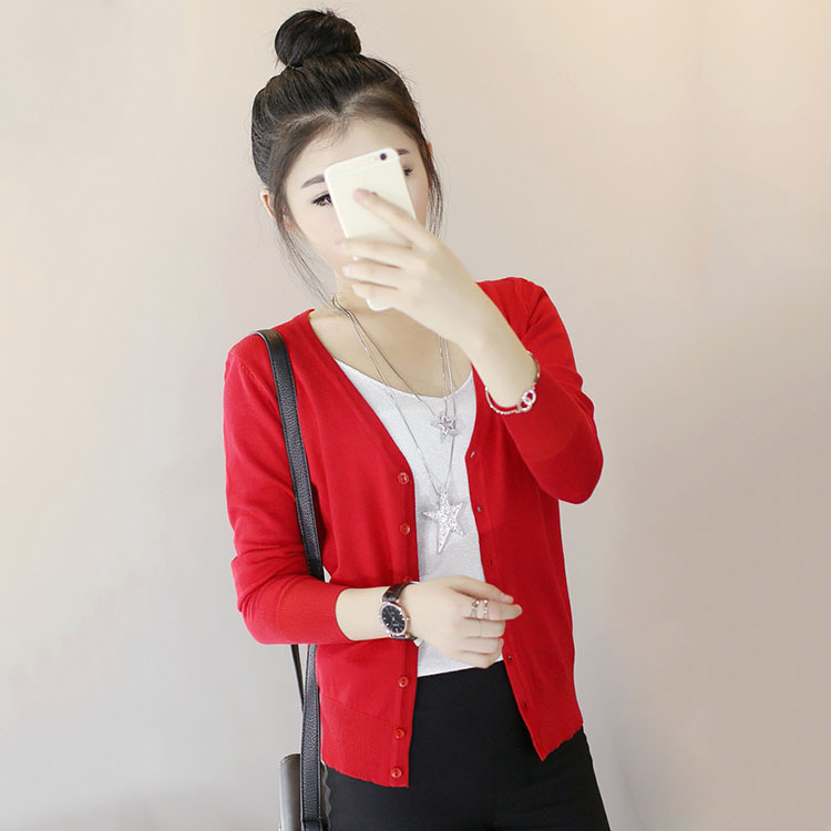 時尚女裝韓版秋冬長袖開衫V領(lǐng)外套 多色可選修身短款女式針織衫 /