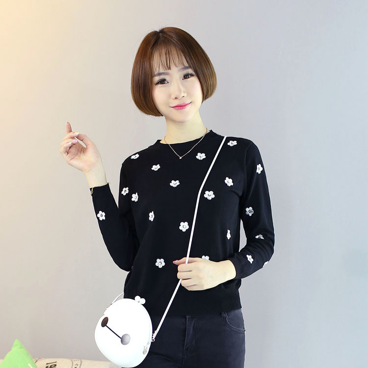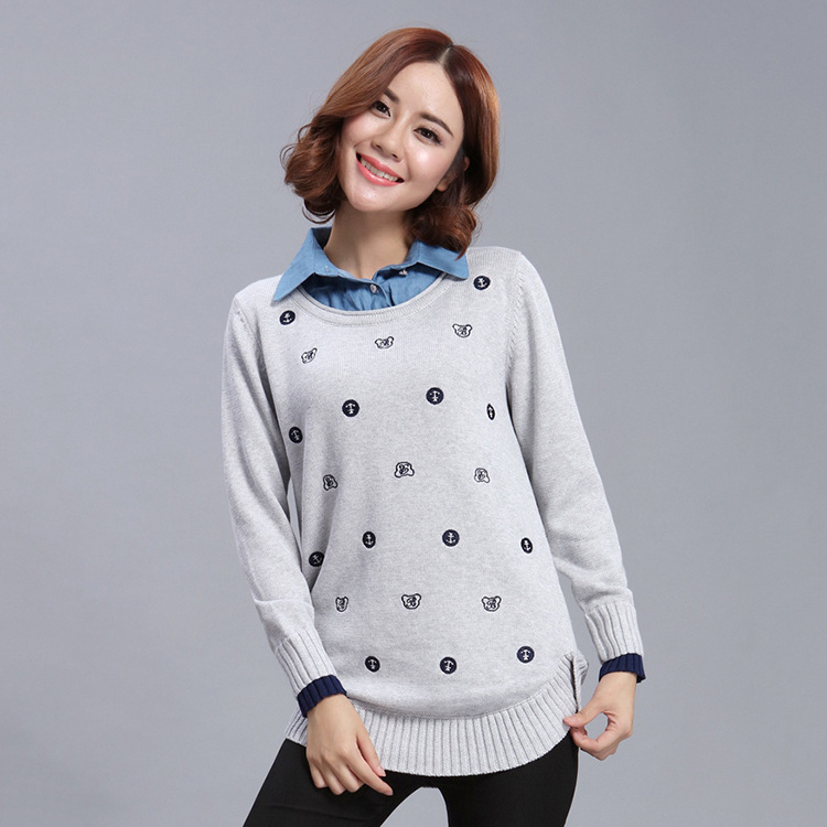 新款2015冬季女士針織衫批發(fā) 時尚潮流休閑圓領(lǐng)套頭卡通修身上衣 /