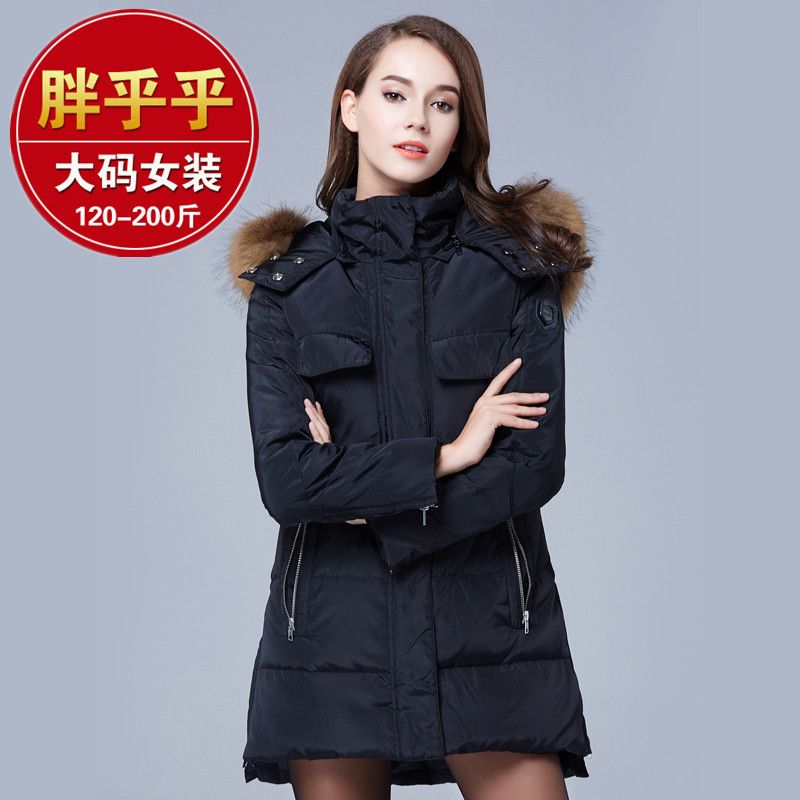 2015加肥加大碼女裝胖mm冬裝超大毛領(lǐng)中長(zhǎng)款加厚羽絨服200斤批發(fā) /