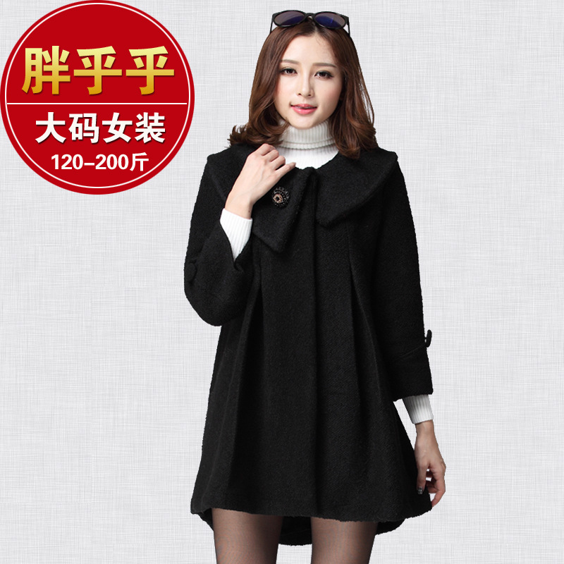 2015秋冬新品特大碼女裝胖MM大翻領(lǐng)韓版毛呢大衣外套加肥加大批發(fā) /