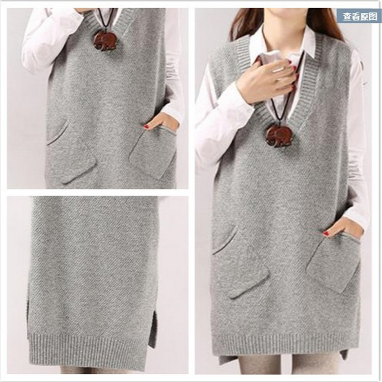 2015春秋裝新款V領(lǐng)馬甲針織衫套頭中長款背心裙無袖毛衣女潮外套 /