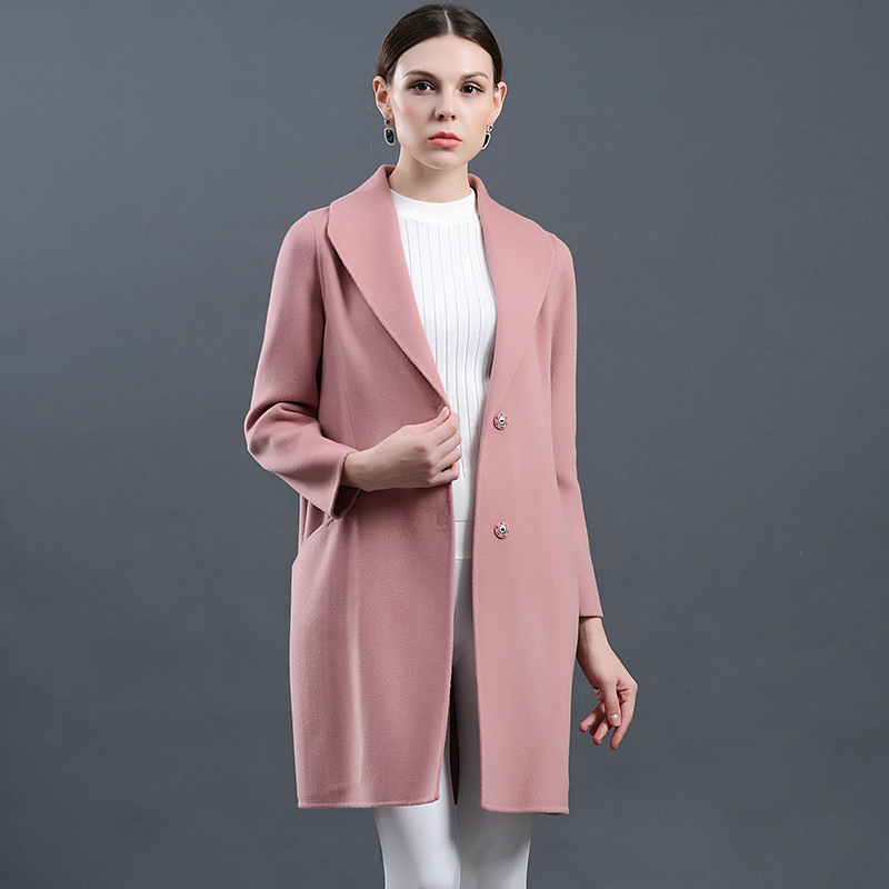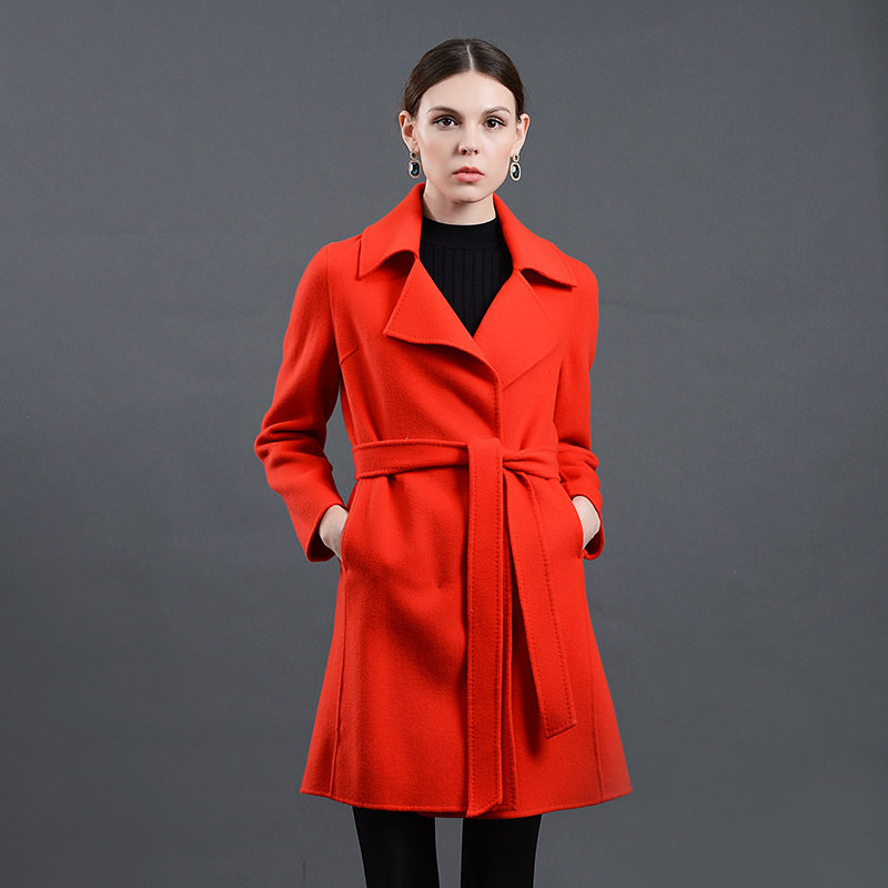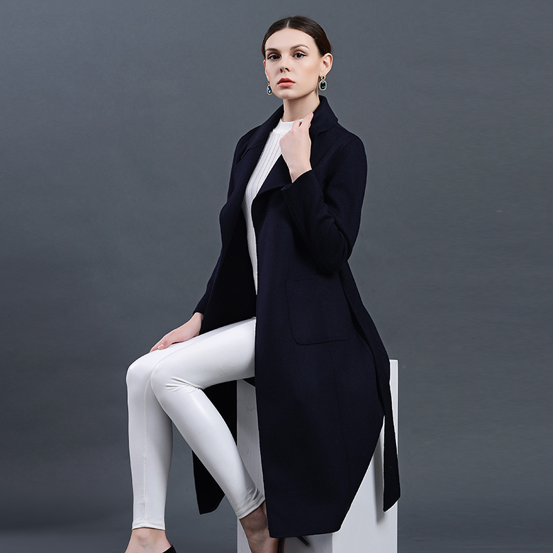 2015秋冬新款歐美風(fēng)翻領(lǐng)手工純色雙面羊絨呢大衣女長款毛呢外套女 /