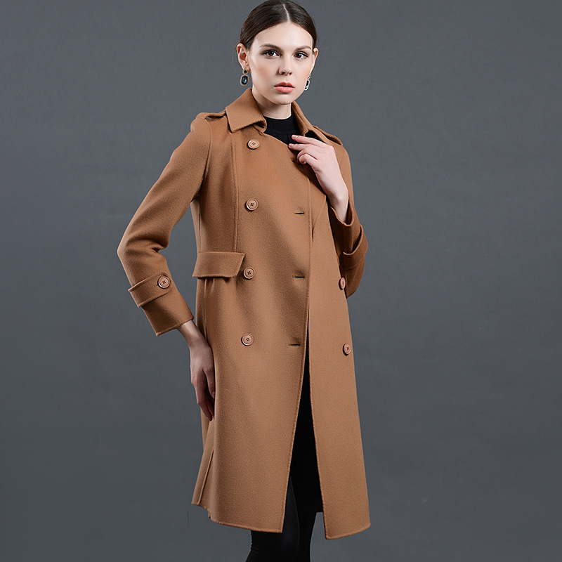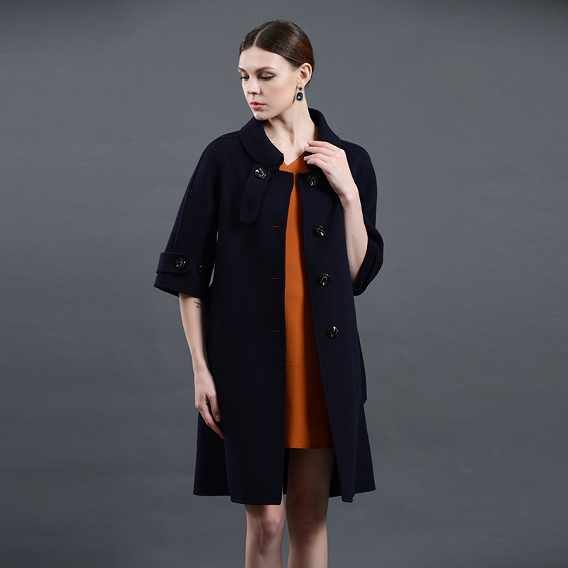 歐美雙面羊絨大衣女 高端長款立領(lǐng)中袖外套2015秋冬新款爆款女裝 /