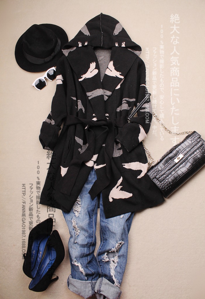 簡介: 貨號(hào)14197 產(chǎn)地桐鄉(xiāng) 主圖來源實(shí)拍無模特 產(chǎn)品類別大衣 貨源類別現(xiàn)貨 是否庫存否 面料名稱針織 主面料成分棉 主面料成分的含量50(%) 圖案動(dòng)物 風(fēng)格歐美 厚薄普通 版型修身型 衣長中長款(65cm<衣長≤80cm) 領(lǐng)型連帽/帽領(lǐng) 袖長長袖 衣門襟系帶 是否有腰帶有腰帶 上市年份/季節(jié)2015秋季 顏色黑色,藏青色