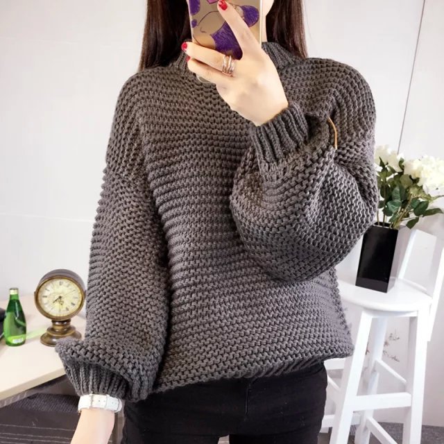 秋冬女毛衣韓版新款寬松粗針百搭套頭女打底衫針織毛衫女裝外套厚 /