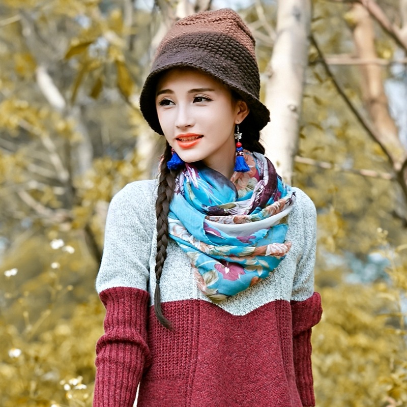 2015秋冬新款百搭女裝文藝范圍巾花色棉麻長方巾女 /