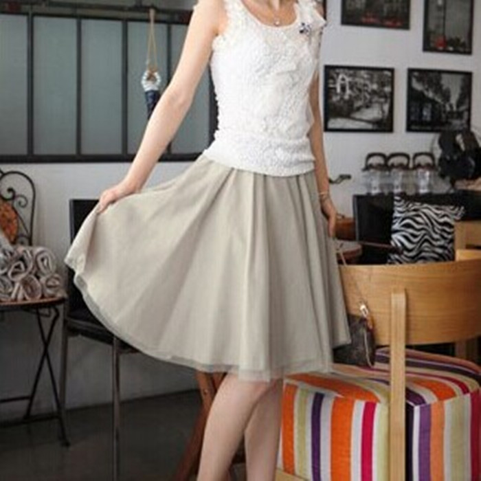 波西米亞真絲網(wǎng)紗裙雪紡裙半身裙大碼中裙大擺裙短裙 /