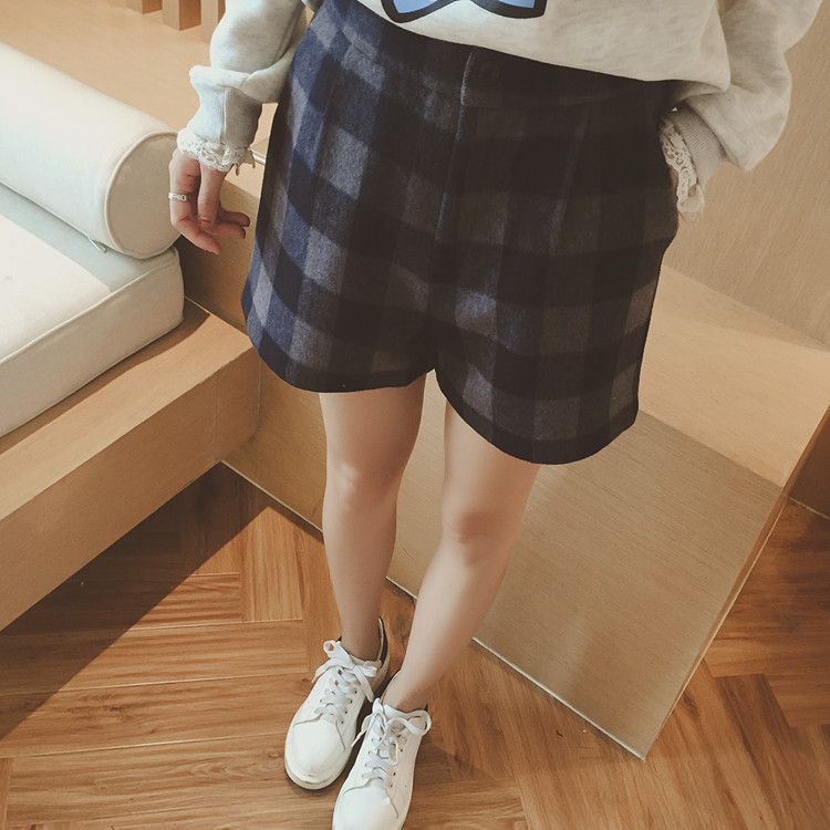 2015秋冬新款 韓版女裝修身顯瘦百搭含90%羊毛毛呢格子短褲靴褲 /