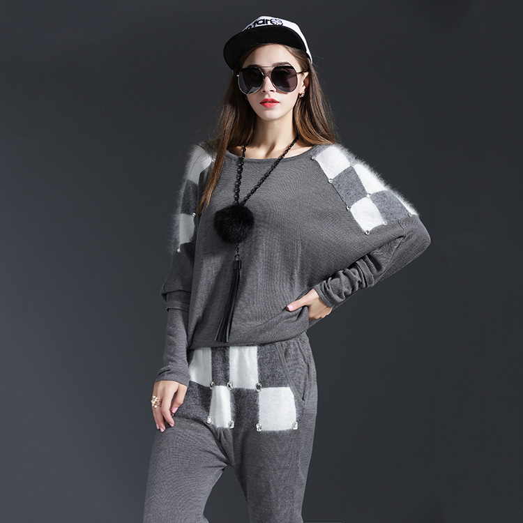 歐洲站套裝2015新款運動套裝女秋冬 蝙蝠袖小香風套裝代理批發(fā) /