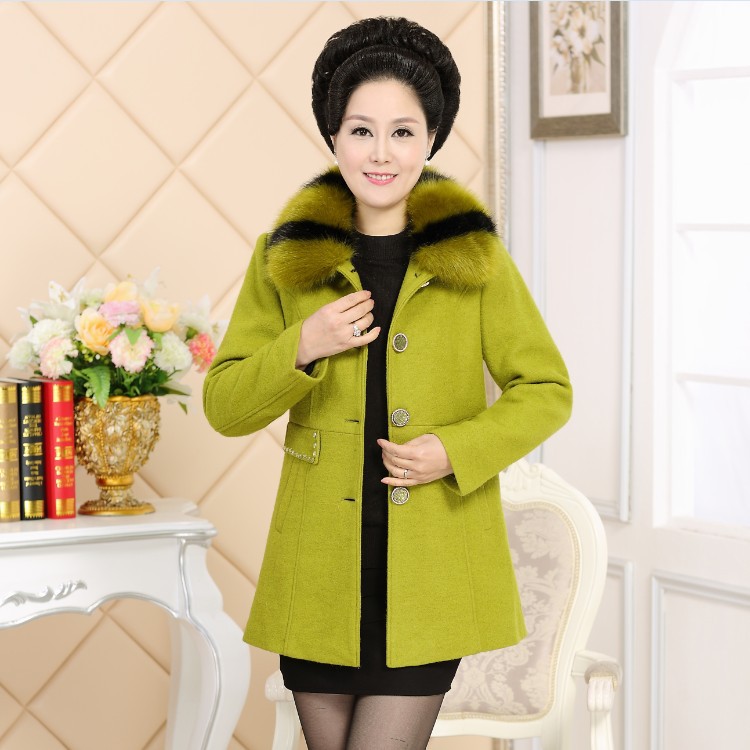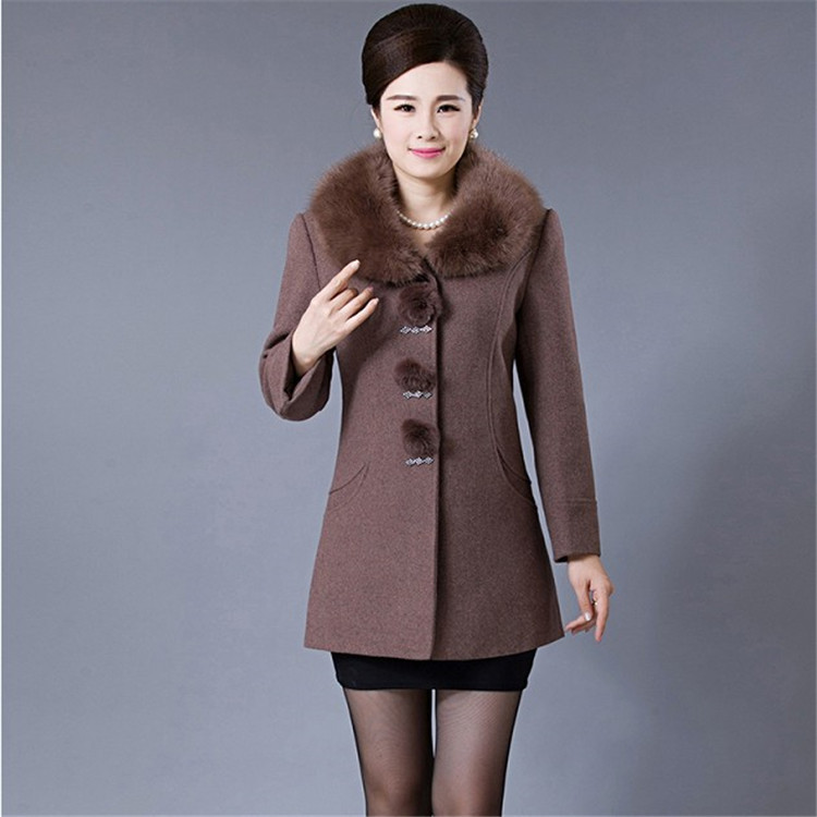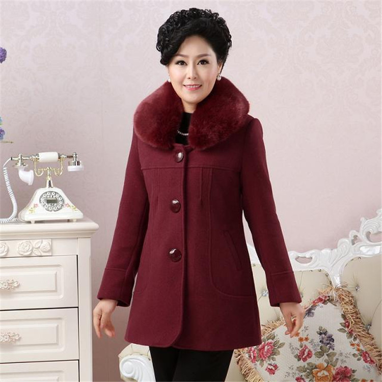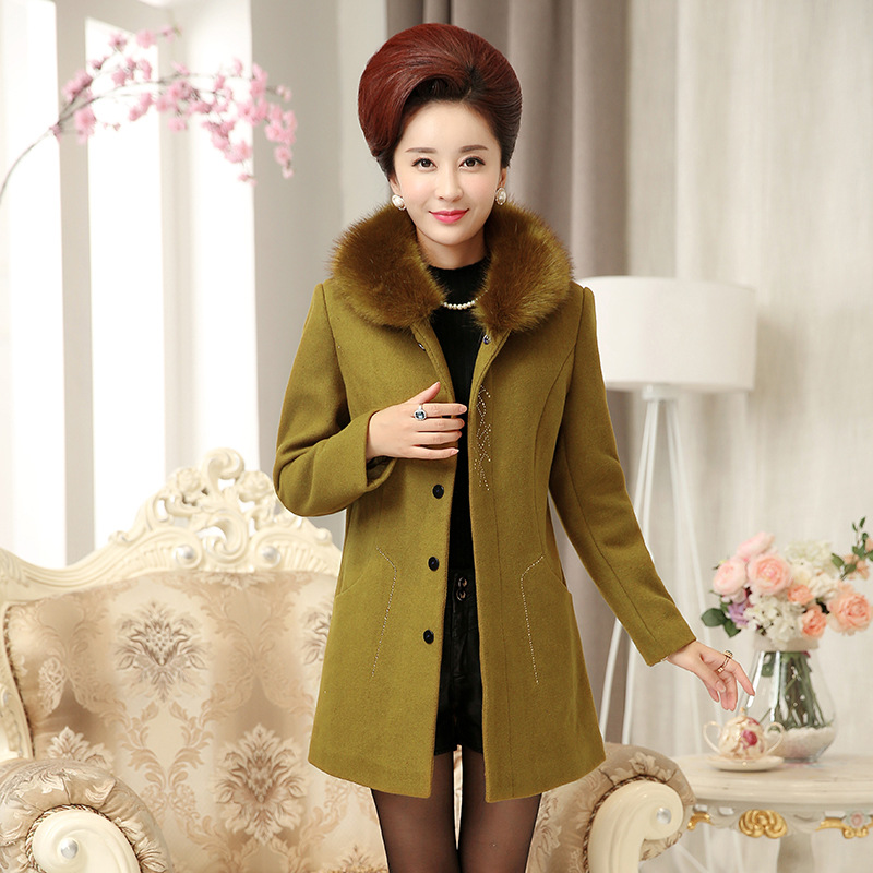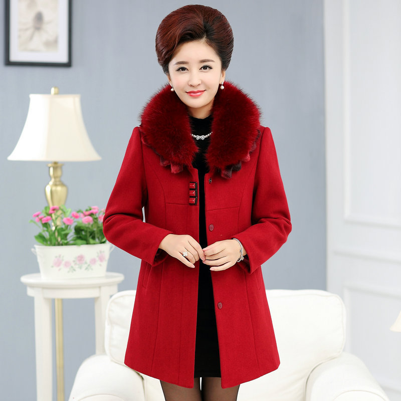 冬季新品中老年女裝羊毛呢外套中長款加厚中年媽媽裝呢子羊絨大衣 /