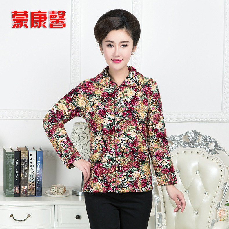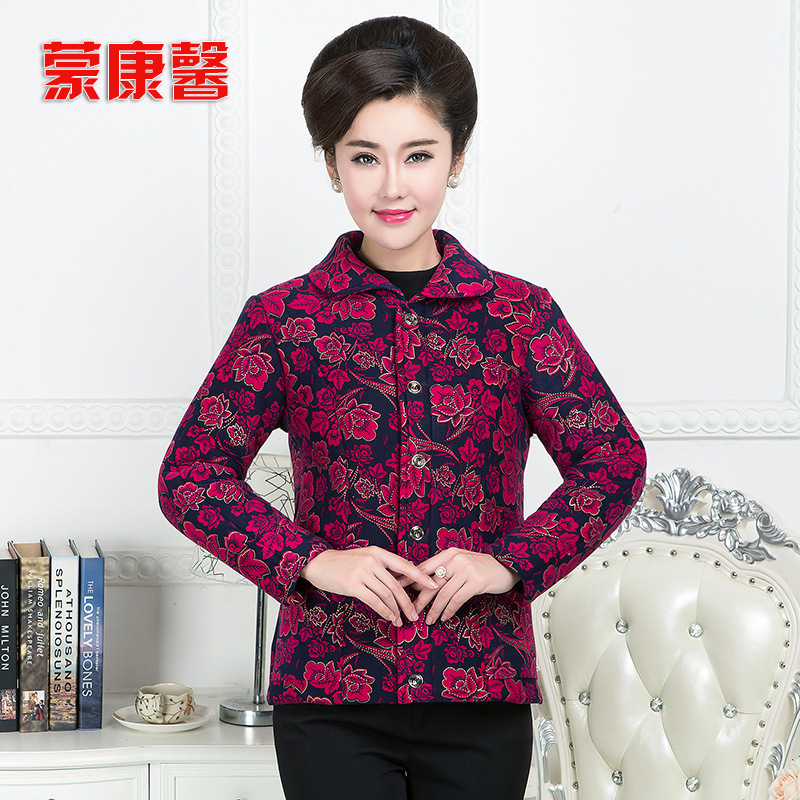 蒙康馨中老年女裝秋裝新款2015牛奶絲媽媽裝 老年人衣服棉衣 /