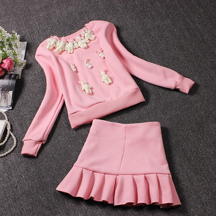 實(shí)拍立體兔子裝飾名媛小香風(fēng)衛(wèi)衣抓絨套裝 /