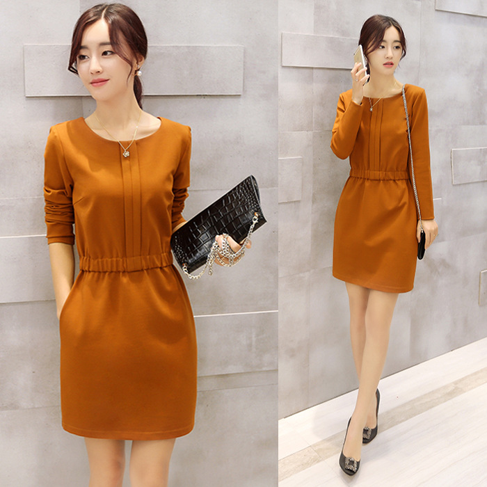 秋裝女寬松大碼休閑A字裙中長款秋冬打底裙長袖針織連衣裙秋 /