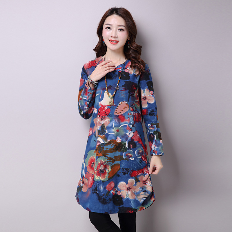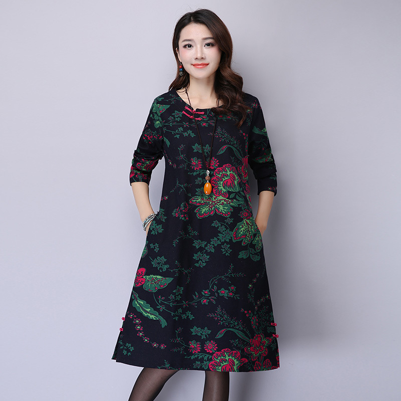 實(shí)拍2015秋冬新款大碼女裝棉麻印花復(fù)古連衣裙加厚外套 好質(zhì)量 /