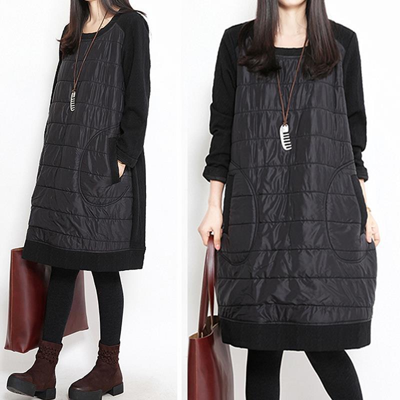 2015秋冬新款韓版大碼女裝圓領(lǐng)夾棉拼接加厚長袖連衣裙 好質(zhì)量 /