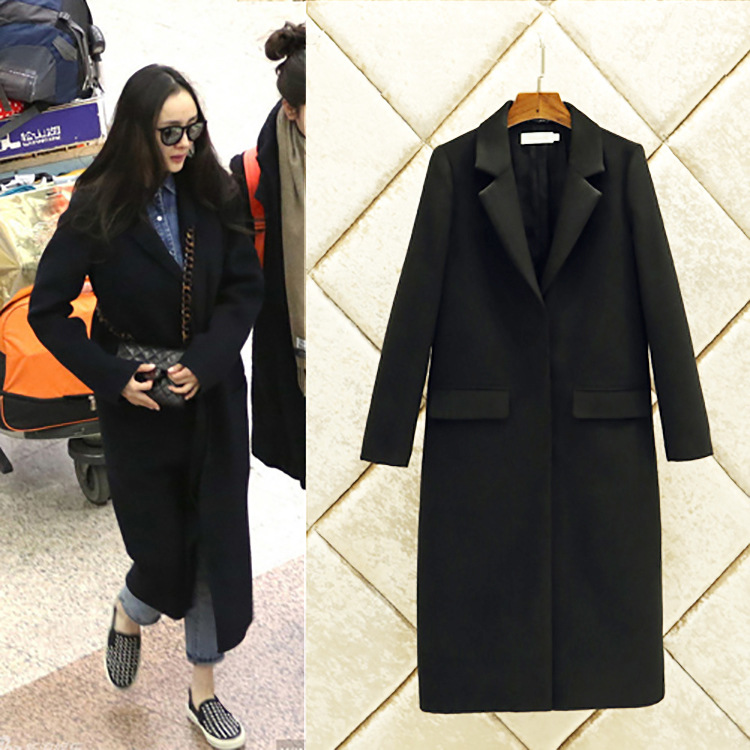 克拉戀人楊冪同款羊毛呢子外套繭型修身過膝純色加長(zhǎng)款風(fēng)衣大衣女 /