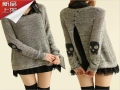 2015新款韓版花線針織衫骷髏頭花型兩件套寬松中長款毛衣 套頭 /