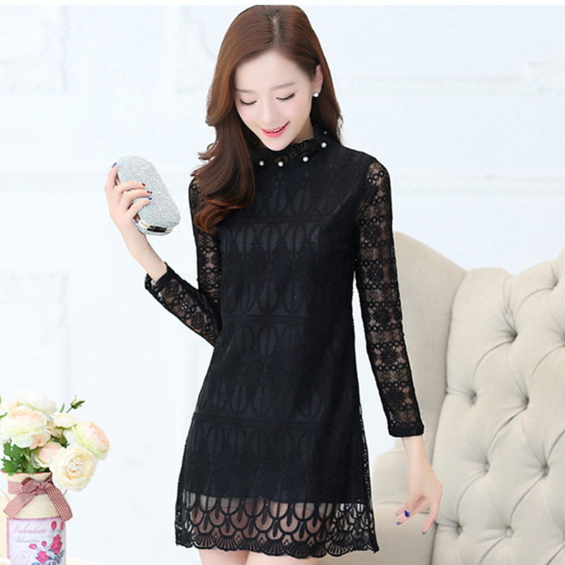 秋裝中長款蕾絲衫上衣女韓版修身顯瘦長袖半高領(lǐng)打底衫 /