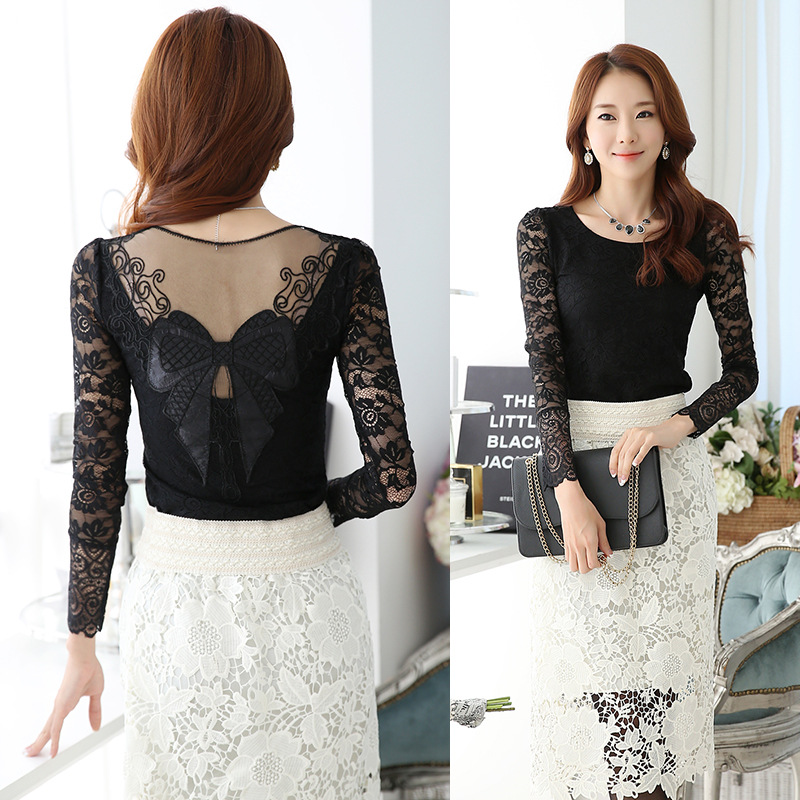 2015秋裝新款 修身顯瘦女裝蕾絲上衣打底衫韓版秋季新品長袖t恤 /