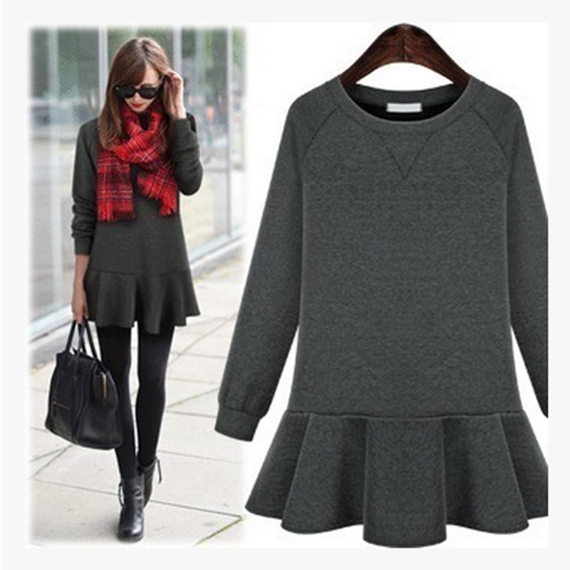 歐美大碼女裝 2015冬季新品胖MM魚尾裙 純色顯瘦長袖連衣裙 /