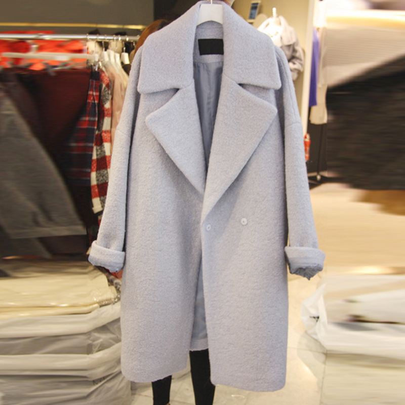 羊毛呢大衣2015秋冬裝新款韓版女裝呢子寬松加厚中長款毛呢外套女 /