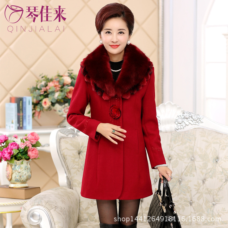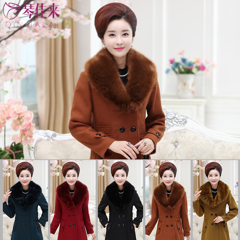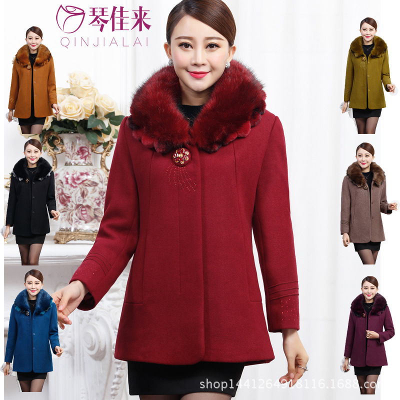 新款中老年女裝毛呢外套品牌媽媽呢子大衣大碼毛領(lǐng)中長款加厚批發(fā) /