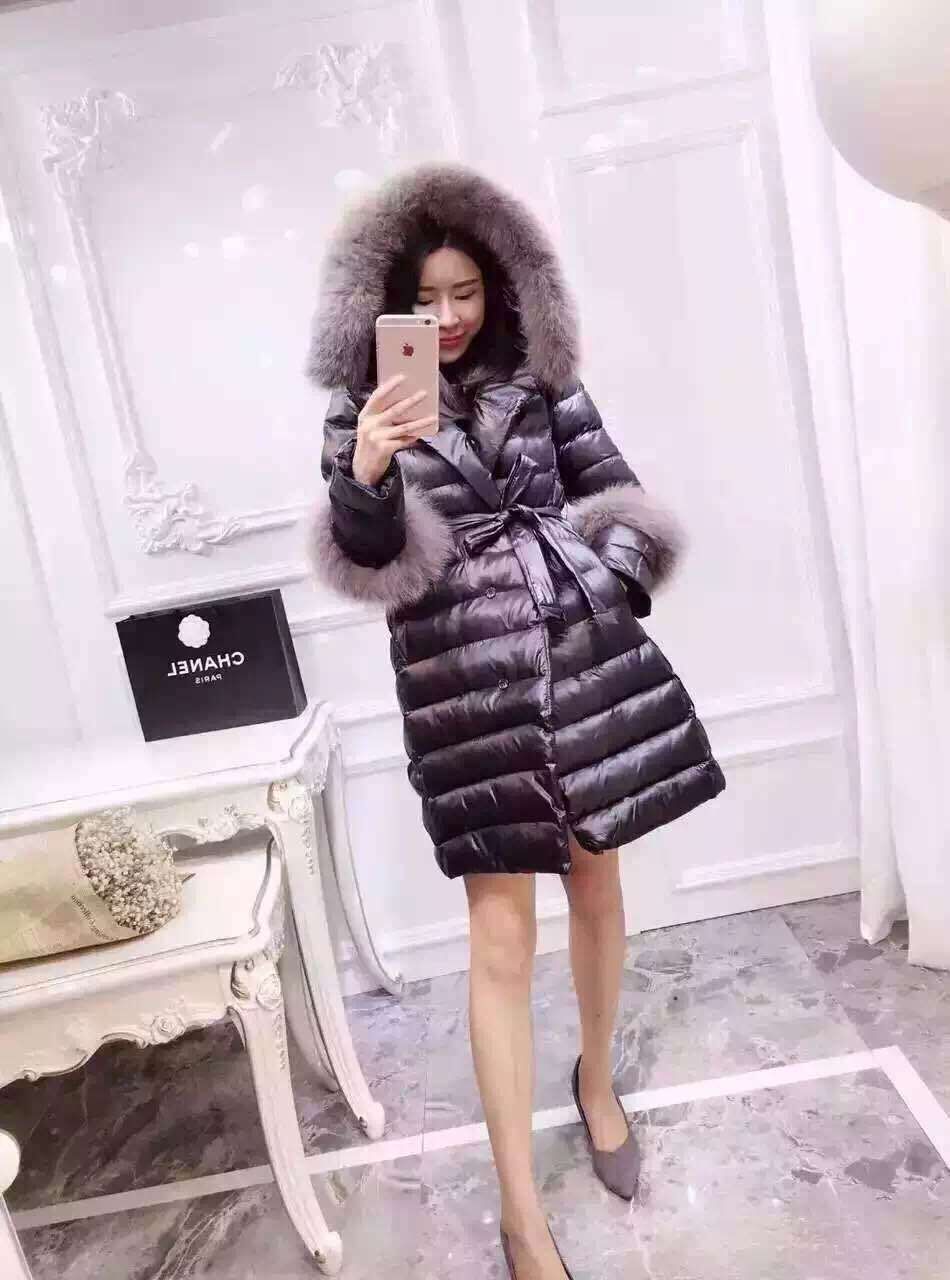 2015歐貨新款連帽狐貍毛領(lǐng)收腰長款羽絨棉服 袖子可拆卸 /