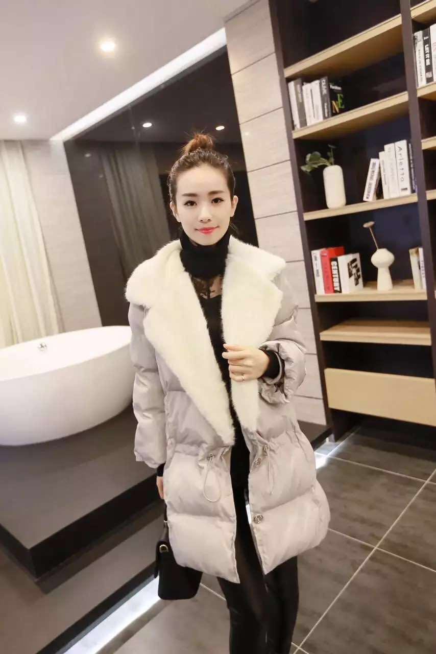 歐洲站2015冬季歐貨爆款超大圈圈毛領(lǐng)中長款棉服 /