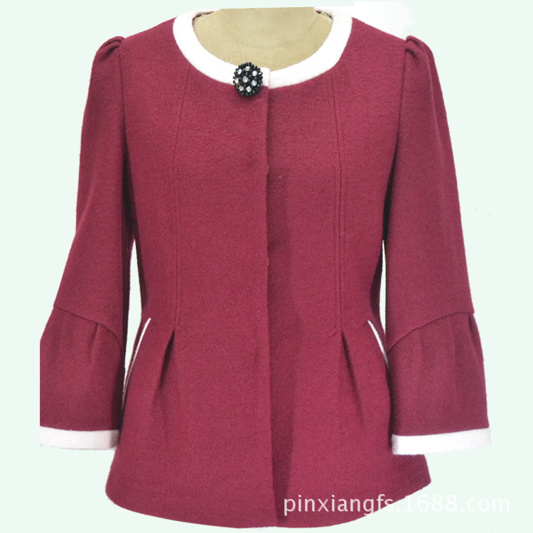 2015新款韓版羊呢女式大衣 特色收腰精品時尚媽媽衣 外套女裝批發(fā) /