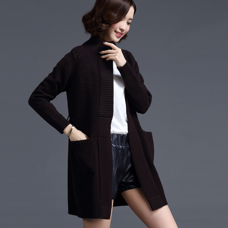 歐美時尚純色針織外套 秋冬天新品女式毛衣開衫外套 長款羊毛衫批 /